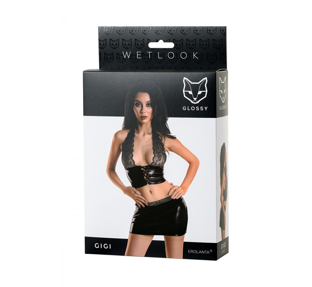 КОМПЛЕКТ GLOSSY GIGI ИЗ МАТЕРИАЛА WETLOOK, ЧЕРНЫЙ, S